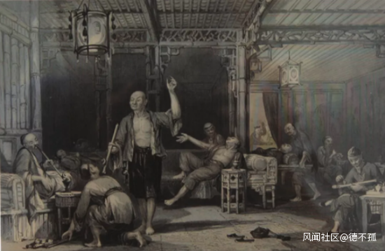 晚清,鴉片氾濫成災,煙館林立,無論是王公貴族,還是平民百姓,都吸食鴉片。圖為英國畫家托馬斯·阿羅姆(Thomas Allom,1804-1872)於1843 年出版的版畫《鴉片煙鬼》 鴉片戰爭博物館/ 供圖