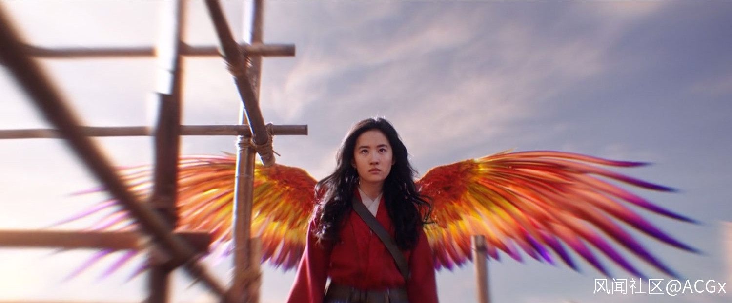 作為一名死宅,整部電影看下來最有印象的,除了劉亦菲一直在線的顏值外,莫過於花木蘭與鳳凰翅膀正好重合在一起的這一幕了。