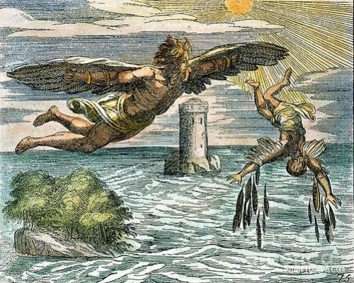 在古希臘神話裏,伊卡洛斯與他的父親代達羅斯,就曾使用由蠟結合鳥羽製成的飛行翼逃離克里特島。然而初次飛行帶來的喜悦,卻讓年輕的伊卡洛斯因為距離太陽太近導致飛行翼融化,最終墜海身亡。也因此,埋葬伊卡洛斯的,就被叫做伊卡利亞島——這是一個位於北愛琴海、目前屬於希臘管轄的島嶼。