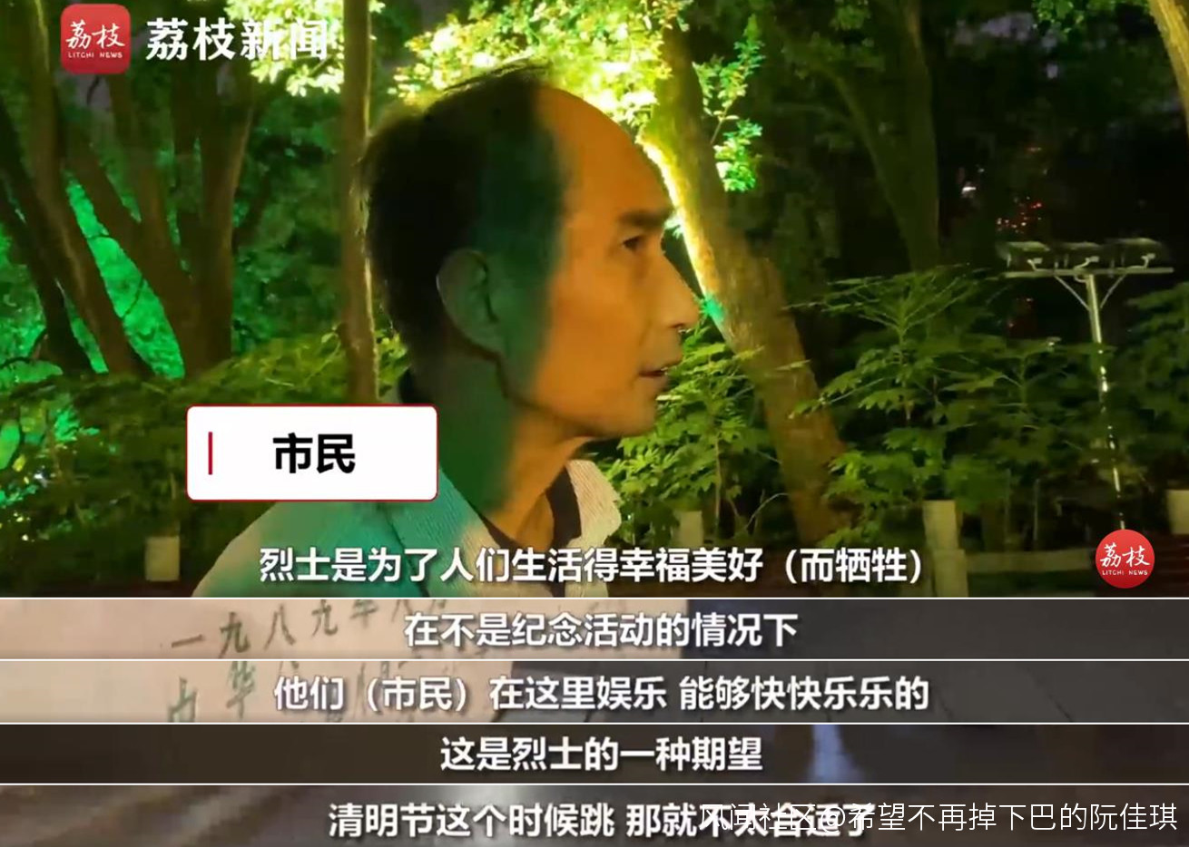 但在記者採訪時,一些現場市民則表示,只要不是在清明節等特殊日子來這兒跳舞就行,看到人們幸福快樂的生活本就是烈士所期望的。