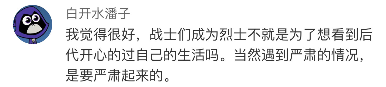 有些網友也表示無需上綱上線,讓烈士陵園沾染一些煙火氣,也許反而更有助於羣眾緬懷。