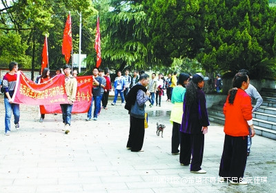 當年清明節,前往施洋烈士墓祭奠的大學生,與在此處晨練的市民“狹路相逢”。