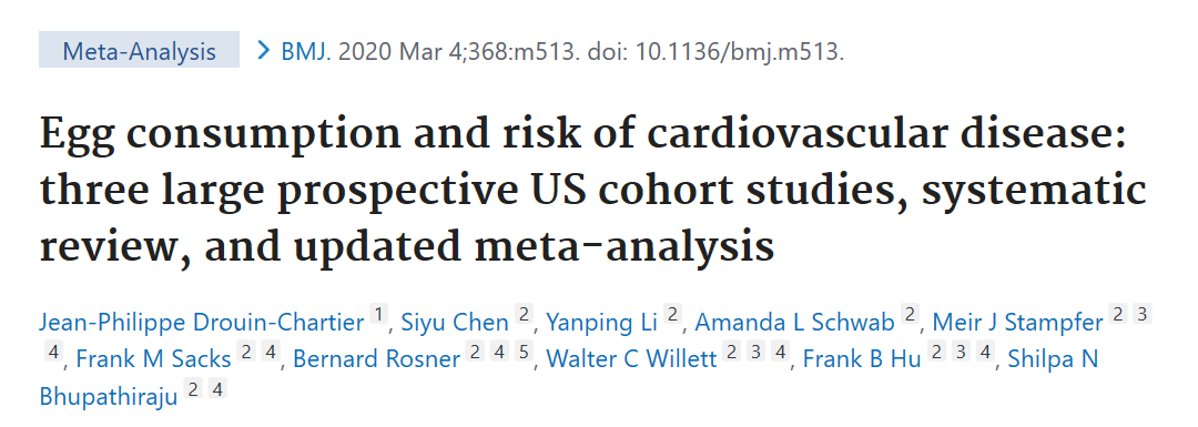 Egg consumption and risk of cardiovascular disease: three large prospective US cohort studies, systematic review, and updated meta-analysis.