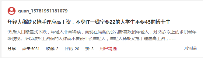 評論區的不少網友認為這是正常水平,畢竟生活成本高,95後大學生稀缺又搶手。