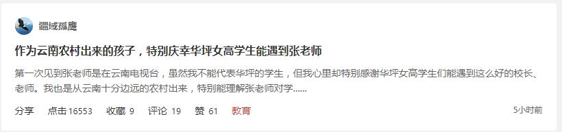 傳送門: 作為雲南農村出來的孩子,特別慶幸華坪女高學生能遇到張老師 評論 30 用户精選