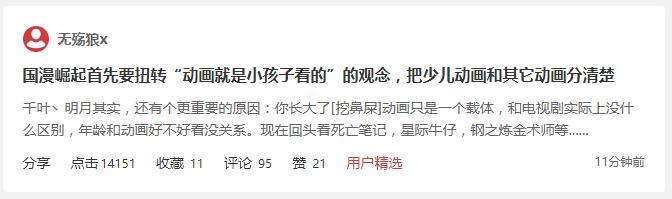 關於國漫的討論,今天也是社區裏的一個熱門話題。有觀友認為,國漫崛起首先要扭轉“動畫就是小孩子看的”的觀念。