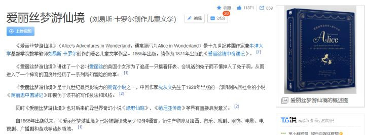 OK,簡單介紹完迪斯尼的發家史後,有人可能好奇,你想表達什麼?我的問題是,有人仔細研究過,迪斯尼的這些動畫,它是從哪來的嗎?比如,第一部作品,愛麗絲夢遊仙境,是他們原創的故事嗎?答案是否定的:這是一部1865年出版的英國童話。十九世紀最具影響力的荒誕小説之一。注意關鍵詞:英國童話