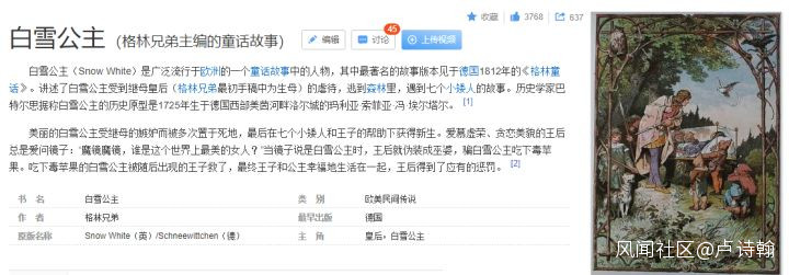 那麼,白雪公主和七個小矮人,又是哪來的呢?答案是1812年的德國格林童話注意關鍵詞:德國童話