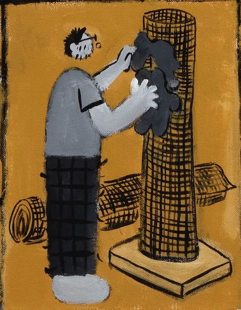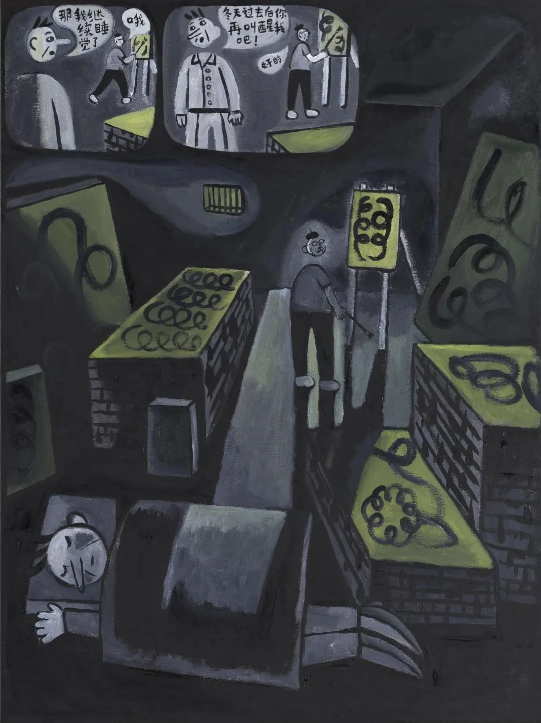 這張畫畫完,我的藏家就給我發微信説:「煙囱,你畫這個事是真的嗎?」我説這是假的,這是我編的故事,不是真的。他説如果是真的就好了,他會特別開心。