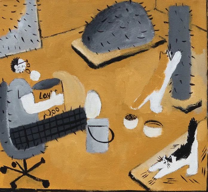 後來,我和我的貓都死了,我們合葬在之前那個公園裏,墓碑上寫着「貓咪和它們的藝術家」。有人拿貓罐頭來祭奠我們。