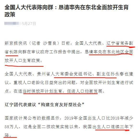 今年兩會上,遼寧副省長就懇求率先放開東北的生育政策。
