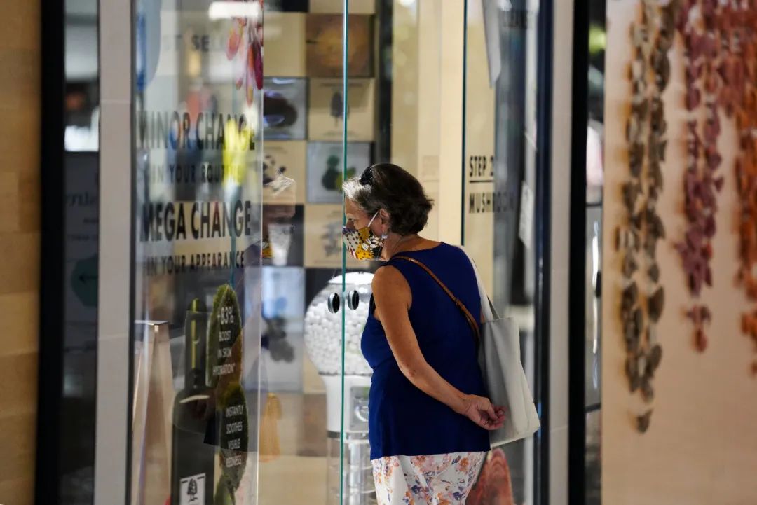 9月9日,美國紐約哈德遜廣場購物中心,顧客在向一家仍未恢復營業的店鋪內張望