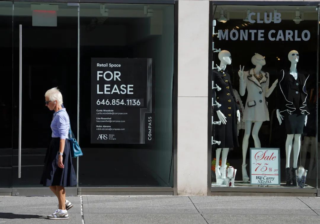 美國勞工部公佈的數據顯示,美國8月失業率環比下降1.8個百分點至8.4%,就業市場有所改善,但仍不及新冠疫情前水平。圖為9月4日,行人從美國紐約一家招租的店鋪前走過