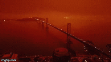 氣象專家Michael Kuss表示,“我們將會看到整個週末,甚至到下週初,這些從俄州甚至北加州吹來的煙霾,會在大温上空徘徊數日。”大温遭煙霾攻擊的另一邊,被山火攻擊的美國西岸更是一片慘狀——整個天空被染成橘黃,塵霧遮天蔽日,宛如末日。