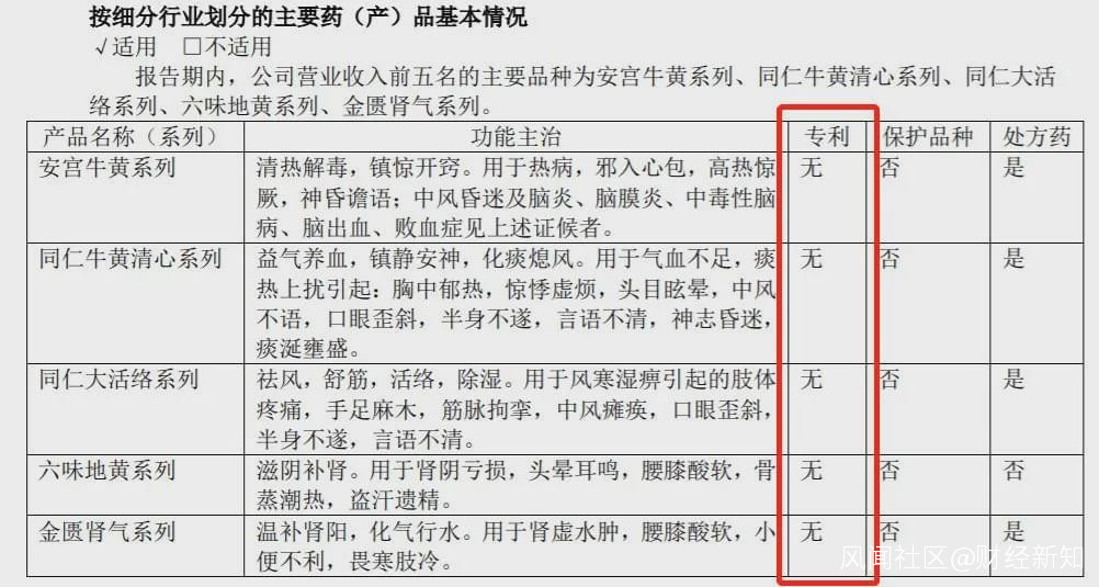 很難想象,在北京同仁堂集團成立至今的二十餘年中,其主力產品仍然是已有幾十年歷史的安宮牛黃系列、同仁牛黃清心繫列、同仁大活絡系列、六味地黃系列、金匱腎氣系列。不僅如此,這些產品甚至沒有任何一項專利。
