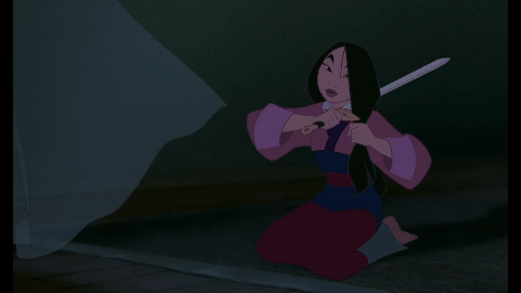 動畫版的木蘭是拿起寶劍,用力地砍掉了自己的頭髮。