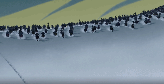 看動畫《花木蘭》裏單于大軍是怎麼出現的。