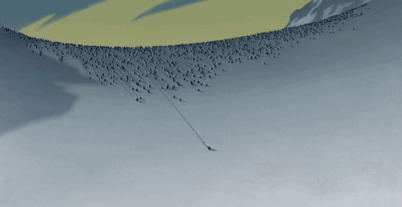 奔騰的馬匹,正應了“阪上走丸”那句成語,像數不清的彈珠從大片雪坡上滾落下來,身後拖出一條長長的細線。