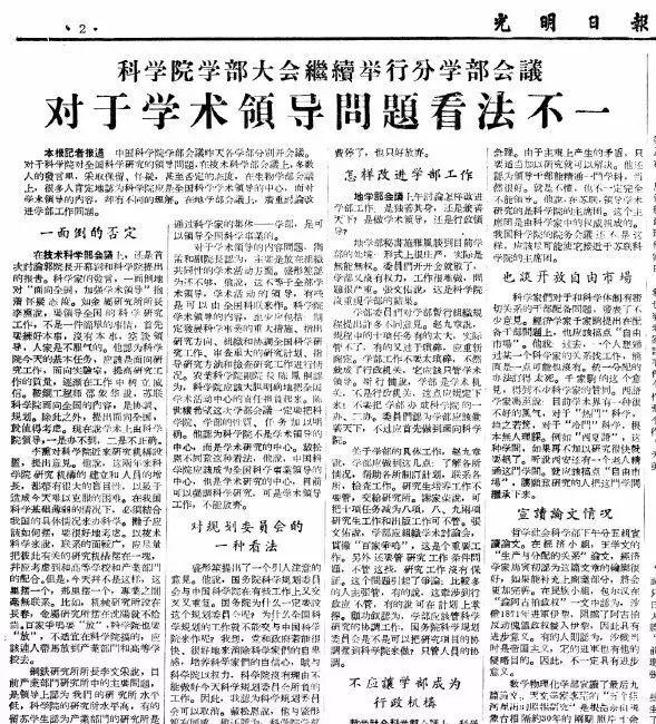 (當年《光明日報》關於學術領導問題爭議的報道)