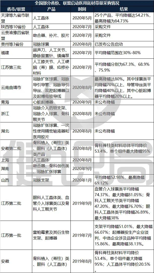 為此,很多省份,如安徽、江蘇、山西,以及京津冀“3+N”採購聯盟等早已向這一領域開刀,包括冠脈支架在內的大批高值耗材價格遭腰斬,部分產品降價幅度甚至在90%以上。(翻至文後,查看各省份、聯盟開展醫用耗材採購詳情)