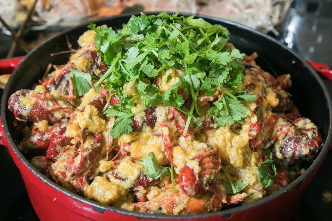 入菜,創造出嶄新的鹹蛋黃口味,鹹蛋黃焗南瓜、鹹蛋黃版的蟹黃豆腐,甚至鹹蛋黃口味的小龍蝦……鹹蛋黃作為黃金配角,妥妥地錦上添花。