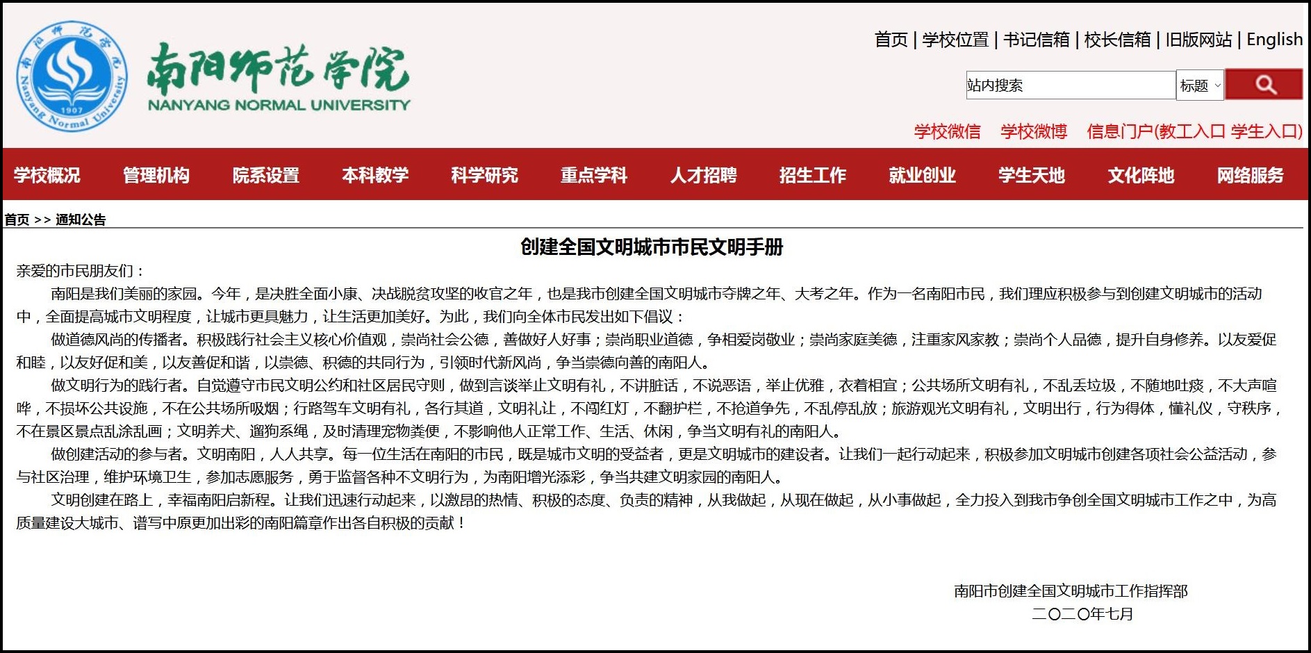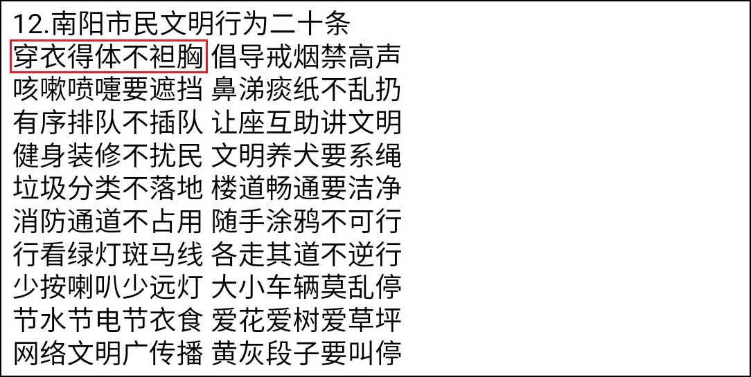 但是,南陽師範學院官網9月10日刊登的《創建全國文明城市市民文明手冊》中,僅有“穿衣得體不袒胸”的要求,並沒有不讓穿短裙的字樣。