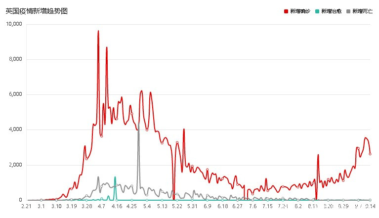 老牌英國豈能無視法、西坐大?必然奮起直追!各種反智和自由的做派絲毫不輸歐洲大陸。但極端不靠譜的醫療檢測系統嚴重阻礙了大英帝國的再次崛起。所以要説老歐洲新冠再起波瀾,英國絕對後勁十足,唯一的阻礙就是英國低效甚至無力化的檢測報告手段~ 英國至今累計報告新冠確診病例37萬多,幾乎與法國齊頭並進,最近一週每日新增至少2600,至多3500 。記住是每日新增。