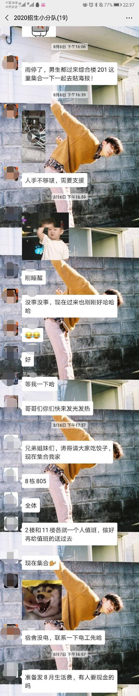 8月6日下午5時57分,陳某在招生志願者微信羣發佈消息稱,另一名老師請大家吃餃子。