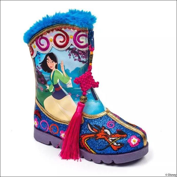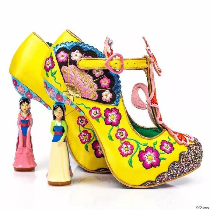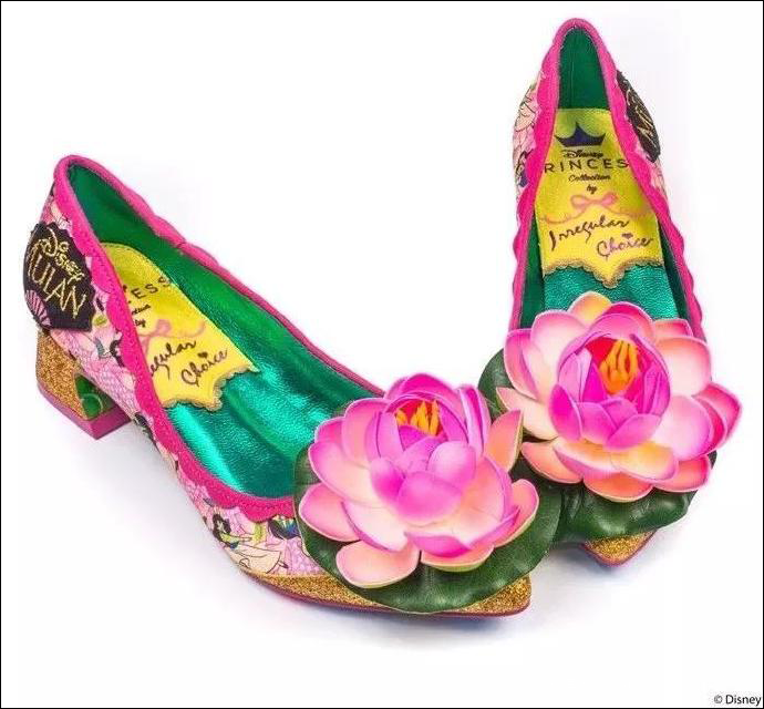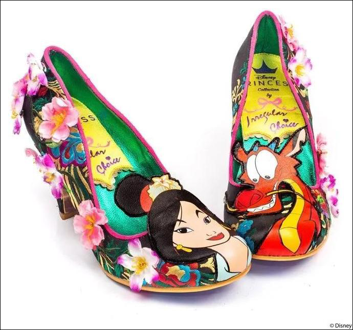 9月14日,微博博主@美術生都關注 曬出了由迪士尼和英國倫敦鞋牌Irregular Choice 聯名推出的《花木蘭》主題鞋。