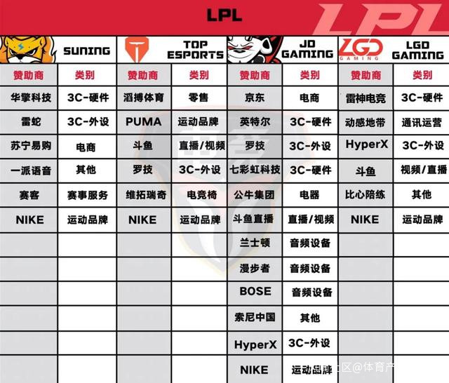 與去年相比,LPL和LEC賽區各增加了一個參賽名額。 在贊助商方面,LPL贊助商總數為30家位居榜首,與S9時期持平。LEC中,G2、Fnatic的贊助商都有一定的增長。