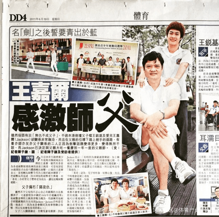 2011年,王嘉爾和父親一起登上香港媒體的體育版面