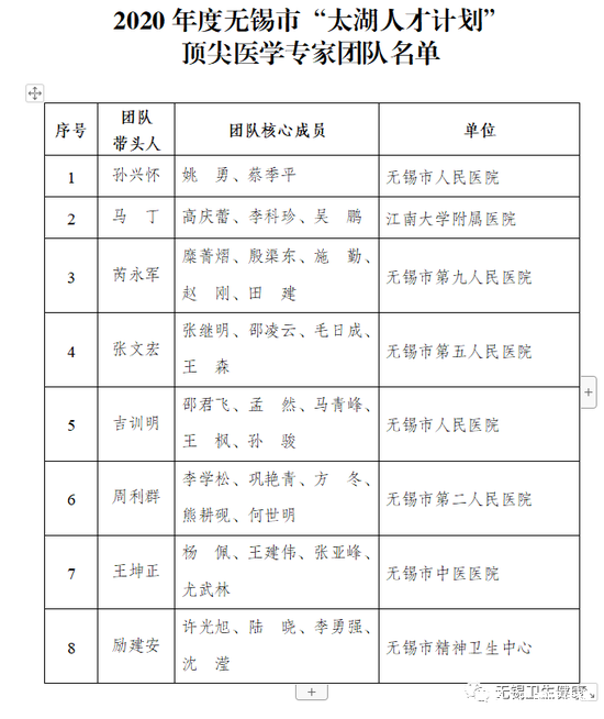 除了張文宏團隊,此次入圍無錫市“太湖人才計劃”頂尖醫學專家團隊以及高端醫學專家團隊還有另外8個國內知名團隊。