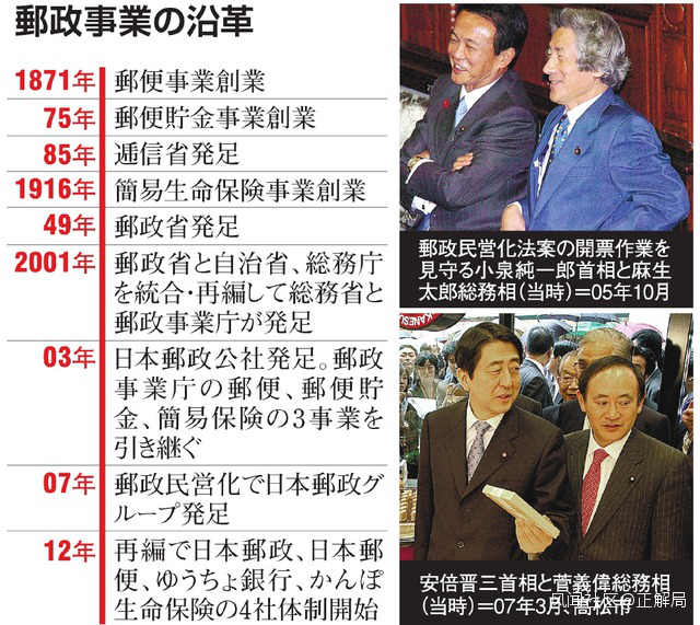 安倍時代也把郵政民營化看作是重中之重,特意安排菅義偉為郵政民營化擔當大臣。