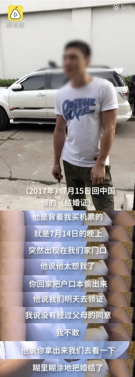 2017年7月15日,俞某東以回家探親為由將王女士帶回了國,連哄帶騙地與她領了結婚證。