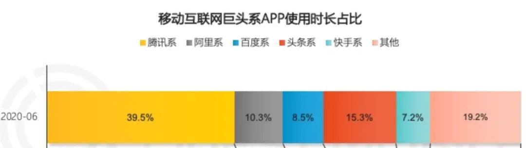我們看到騰訊系產品的用户時長佔比從47.3%下降到39.5%,而頭條系從9.7%上升到15.3%。