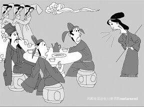 當年,蘇東坡與好友龍丘先生在屋裏談佛經到深夜,忽然聽到好友妻子一聲大喝“死鬼怎麼還不睡覺!”,東坡心生玩梗之趣味,遂詩曰: