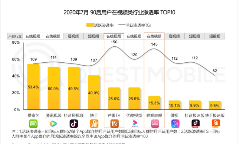 而網紅審美意味着白幼瘦,和嬌憨之間並不很遠。女演員們的嬌憨,不能説沒有被時代綁架的因素——你不可能期待觀眾的審美在抖快和愛奇藝騰訊之間產生巨大割裂,因為他們是同一批人。在Questmobile的90後報告裏,這幾個產品的行業滲透率都居高不下。
