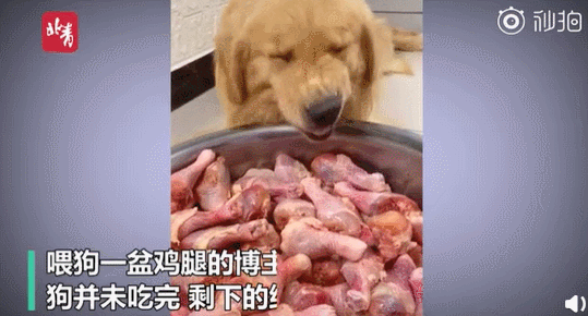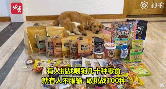 從天而降的一大波雞腿,三斤重的牛心,各式各樣的飲料零食……配合上“大胃王”挑戰背景板,以及主人一句句“吃,就這?”的煽動性發言,寵物大胃王們被“製造”出來。
