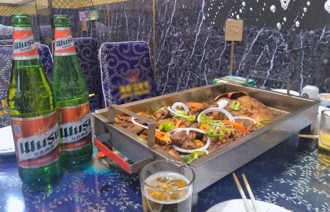 一大槽子的海陸空土坑燒烤****與烏蘇啤酒成了青年人最愛的絕配,也是招待遠道而來親友們的必備法寶。