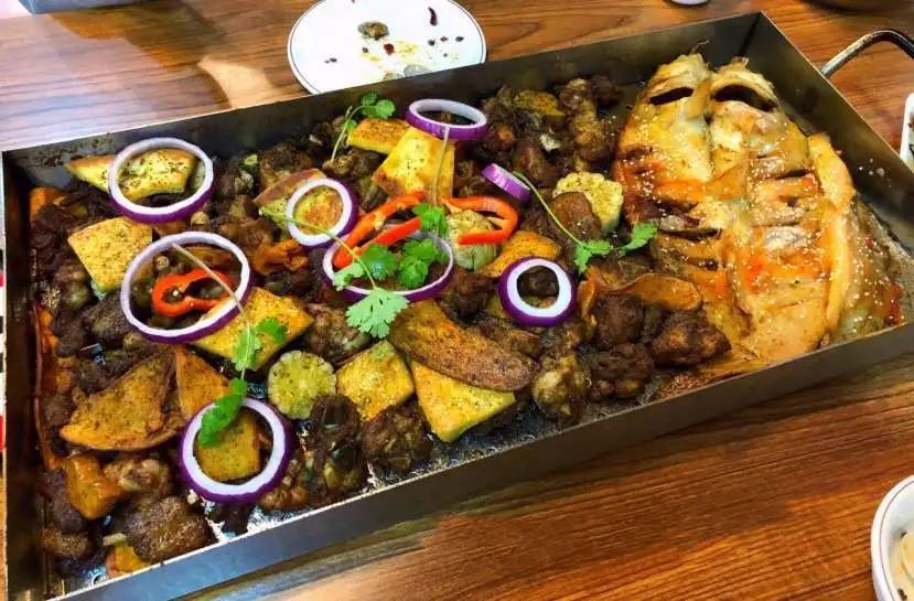 海陸空燒烤——用大槽子裝更多的食物,體現了新疆人與生俱來的豪爽!