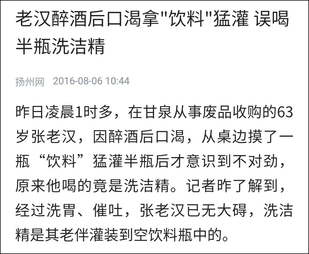 畢竟,在以往的社會新聞中,誤喝洗潔精反而是需要催吐,甚至是要去醫院洗胃治療的。
