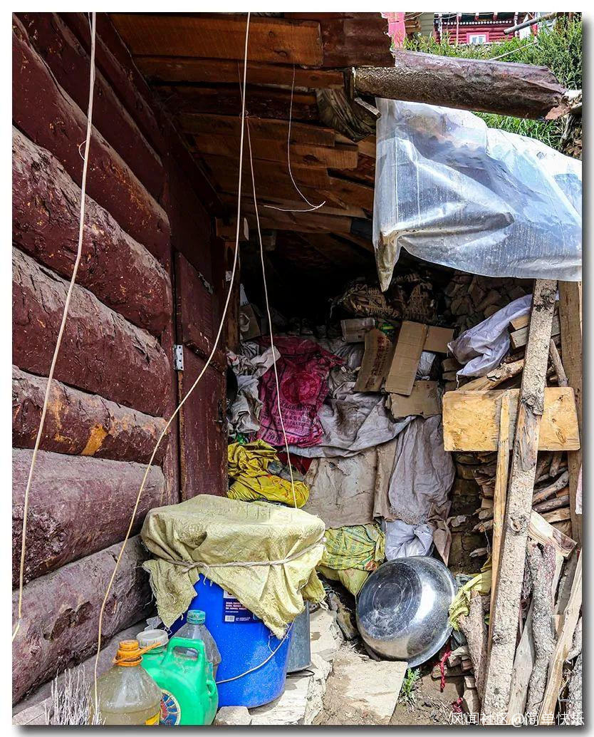 上圖是兩個棚屋之間的情形。挺亂的,水桶、垃圾袋和引火的木材等等。排污怎麼辦?供水都沒有,房間裏會不會有衞生間?
