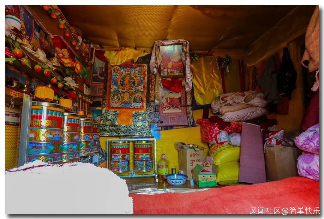 標準棚屋就是隻有十來平方,分為內外兩間,外間是廚房置物區,裏間是卧室。藏傳佛教僧眾都是單人獨居,我在別處黃教寺院闖過康村僧舍,發現全都是一個一間,這可比很多985院校博士生的居住條件還要高。