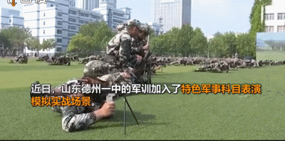 今年山東德州一高中就搞了一場“硬核”軍訓,演練場上硝煙瀰漫,同學們手拿95式、肩扛40火來模擬實戰場景,讓人大呼過癮。