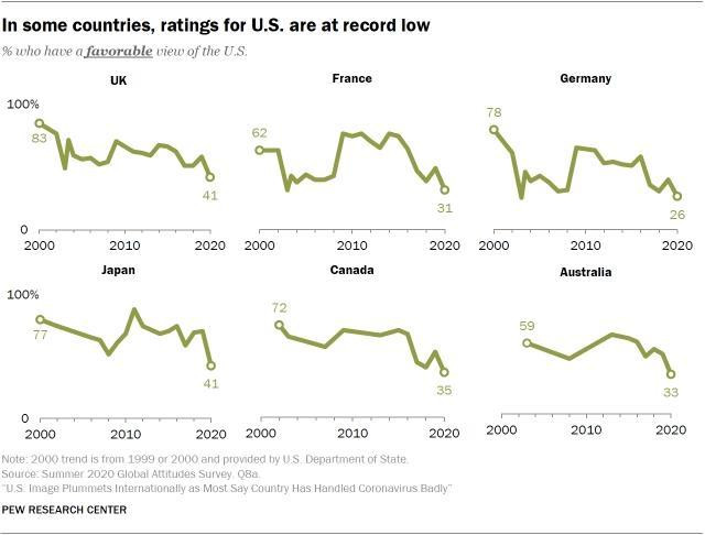 皮尤最新調查顯示:美國正在失去國際人心,國際形象創二戰後最低_風聞