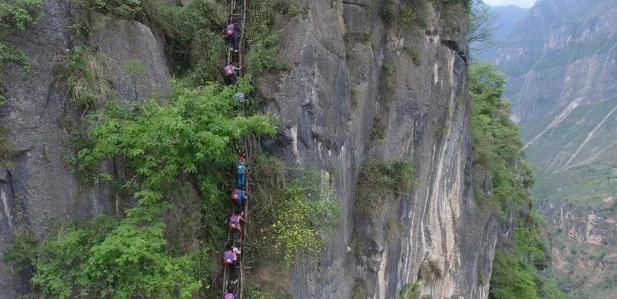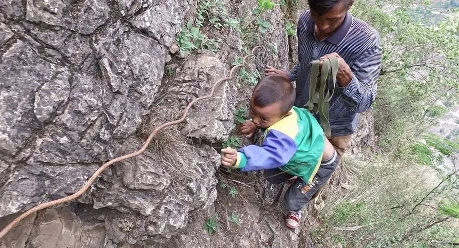 就在這樣的天險中,孩子們甚至要獨自上學。