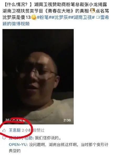 同時,怒氣衝衝地跑去湖南衞視、《青春在大地》、沈夢辰三個微博下質問。