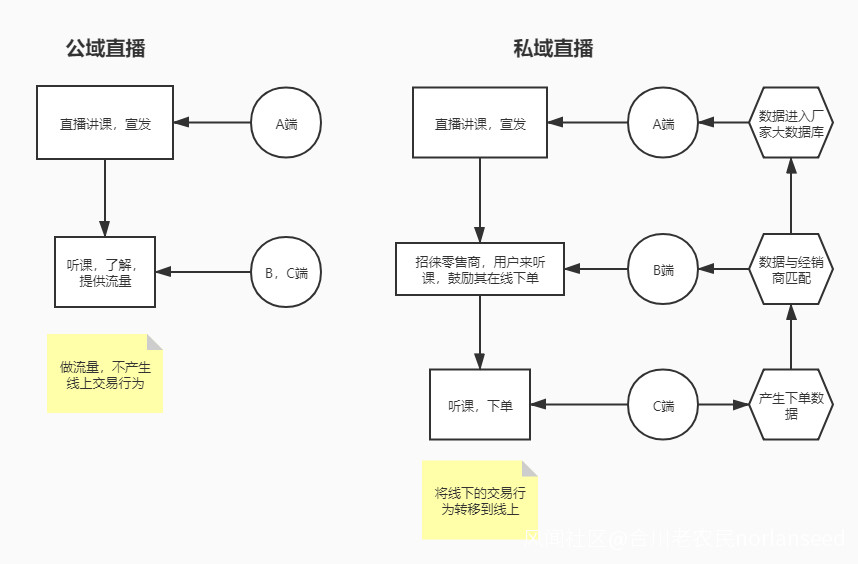 董明珠女士所做的這次直播,在行業內叫做私域直播,其與傳統公域直播不同的點,我用下面這張圖來給你們呈現: