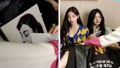 當時,鏡頭外一位成員怕金度伊和李娜妍的裙子太短會走光,好心遞上了一件外套供其蓋在腿上。