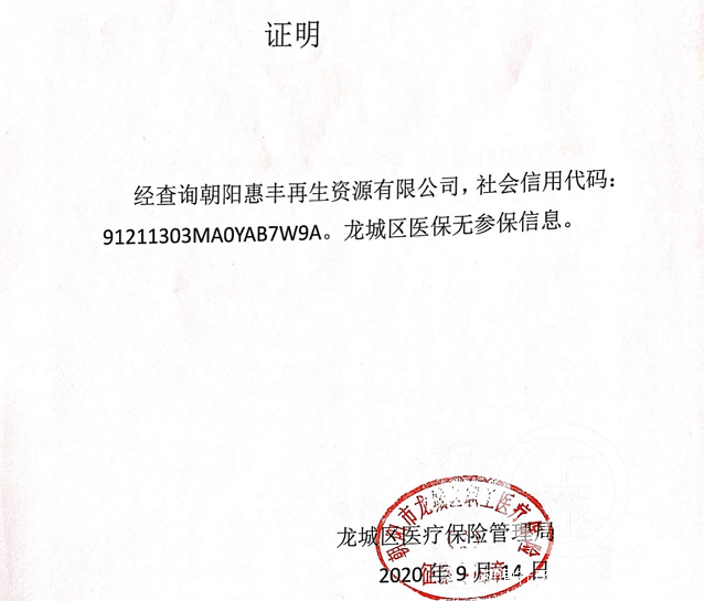 根據8月28日由國家税務總局朝陽市税務局出具的《説明》顯示:經查詢,王志斌在該局共有5户登記納税人,自開業至今累計納税17112.37元;9月14日,朝陽市社會保險局龍城分局出具《證明》:朝陽惠豐再生資源有限公司(該公司法定代表人為王志斌)未在該局參加職工養老保險、工傷保險、失業保險;9月14日,龍城區醫療保險管理局出具《證明》:經查詢,朝陽惠豐再生資源有限公司無參保信息。